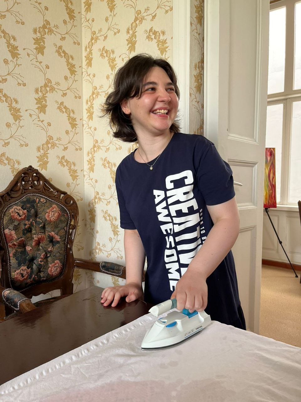 "I like spending time here with my friends. I enjoy cooking, watching movies together, and singing songs. My day here is interesting."“Lala Aghayeva”